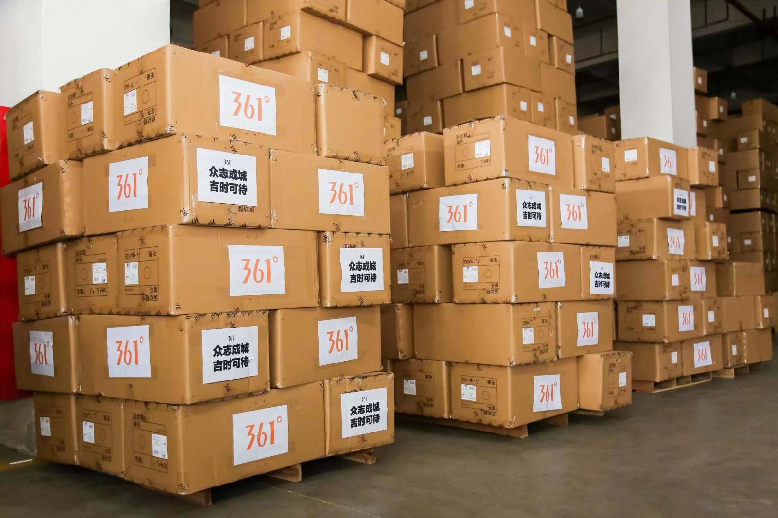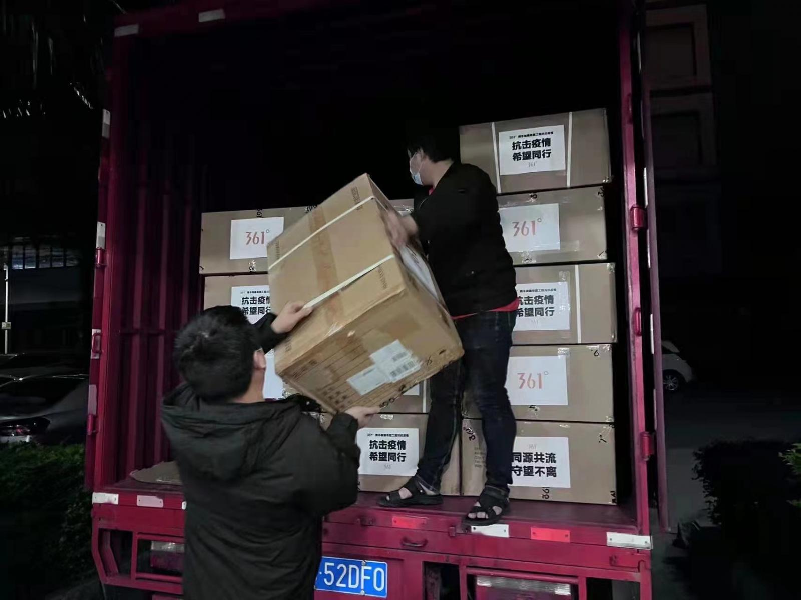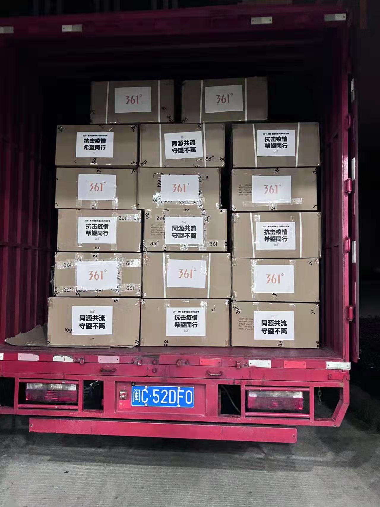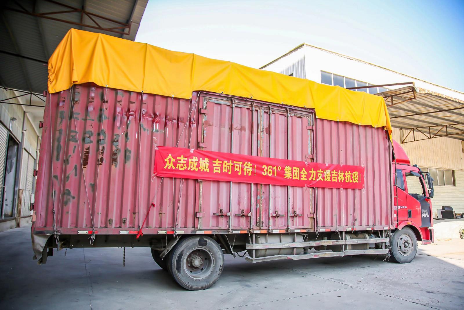 4月29日,361°支援吉林的后续物资集结完毕,将启程赶赴抗疫一线。此前,361°通过中国青少年发展基金会向吉林捐赠的首批御寒物资,已于4月初运抵吉林。